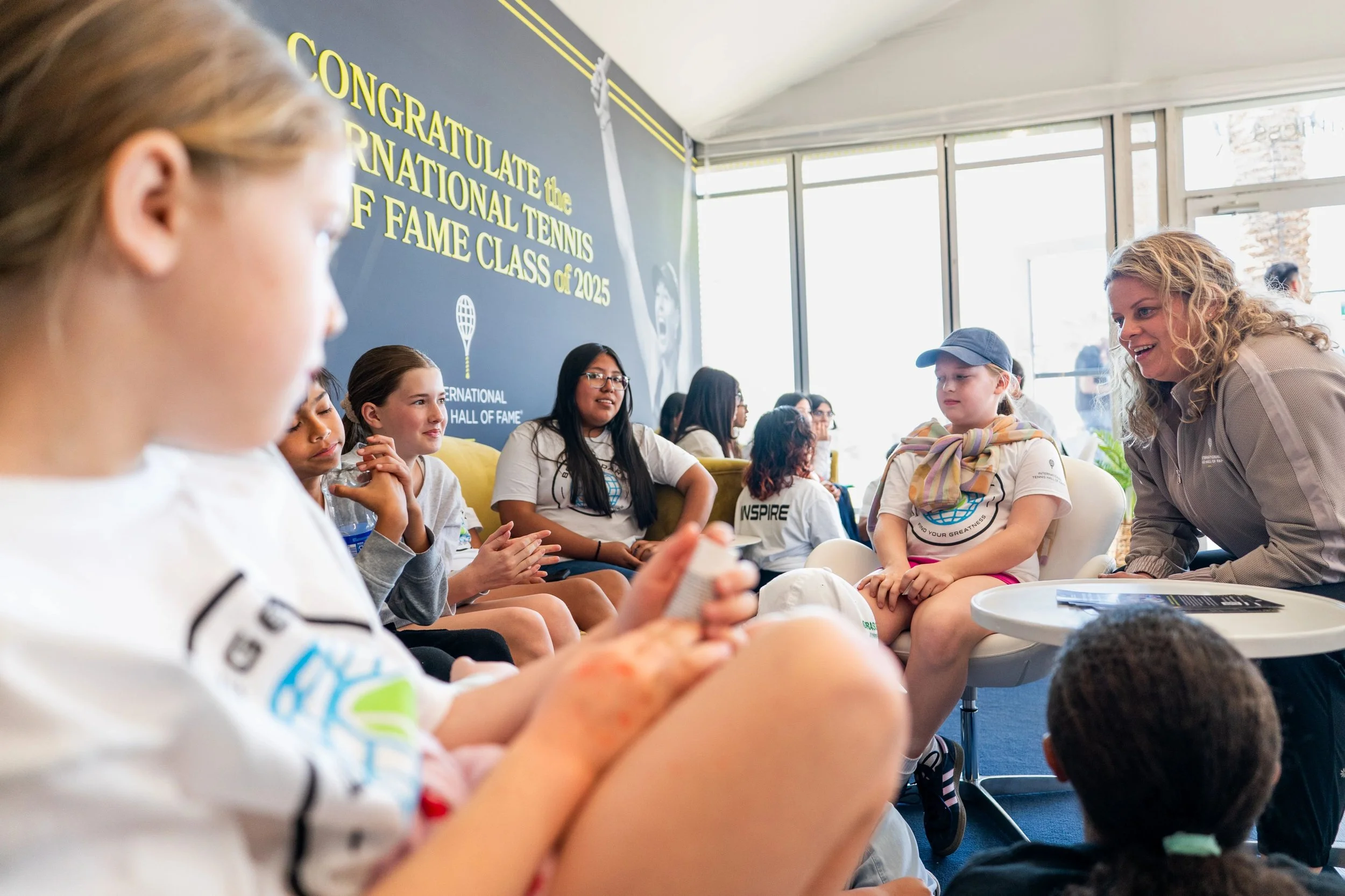 In partnership with Tennis Australia, the International Tennis Hall of Fame launched the first stop of the program in Melbourne, Australia. Sixty-four of the best and brightest kids from the Tennis Australia Super 10s National Camp came together for an exciting week of activities inspired by two Australian tennis legends: three-time Major Title Champion Ash Barty and Hall of Famer Lleyton Hewitt.